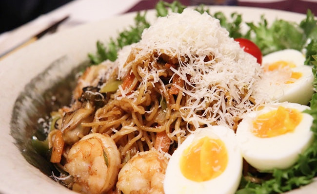海鮮のうま味をまとったソース味の焼きそば!チーズとの相性もばっちり!