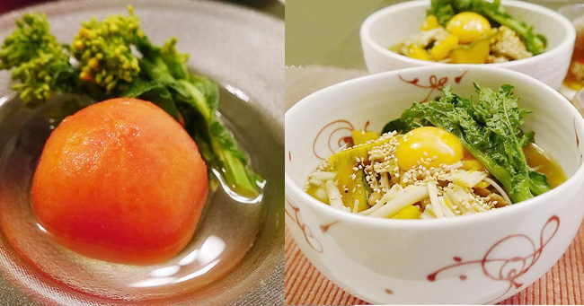 おだしの熱がゆっくりと入ったトマトはお箸で切って食べられます。