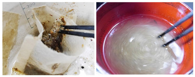 実験大好きなダーリンのつまさんは、先ほど出汁を取った封の中身にも興味津々。