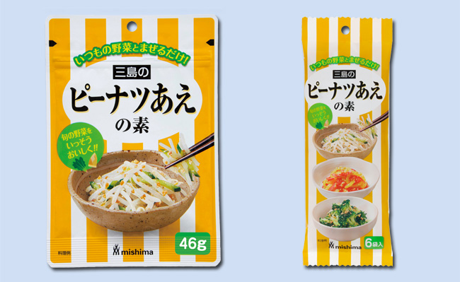 『ピーナツあえの素』は、1971年に発売された業務用商品「ごまあえの素」が好評だったことをきっかけに、姉妹品として開発されました。